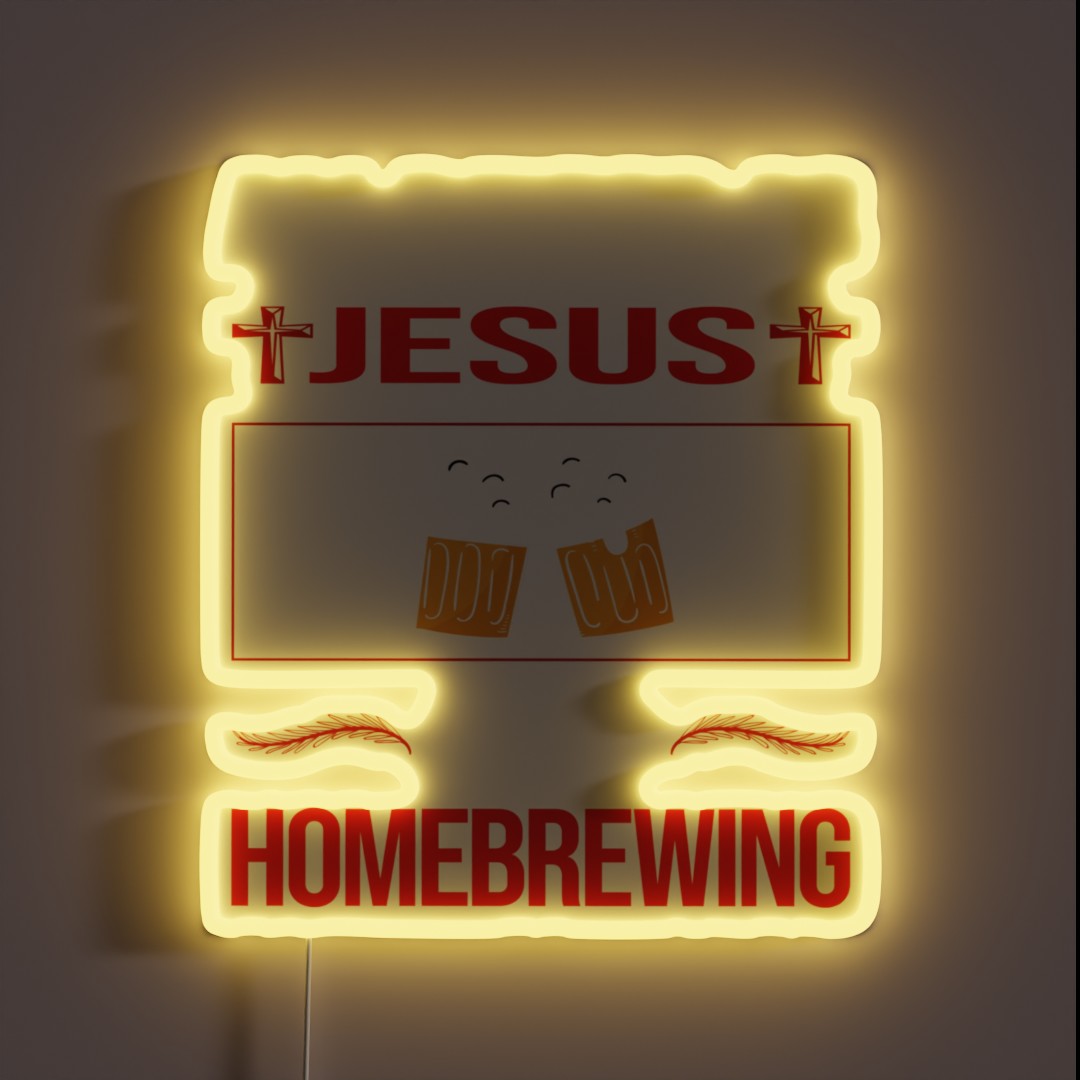 Funny Jesus Homebrewing Homebrew Homebrewer RGB Neon Sign