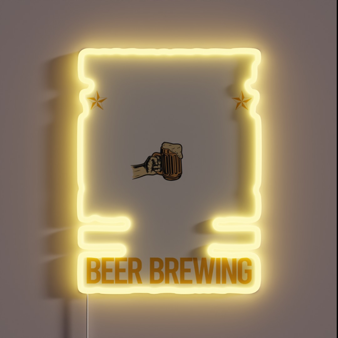 Illuminated bar decor featuring a humorous design that combines beer brewing with colorful neon lights and playful humor, perfect for home bars or man caves.