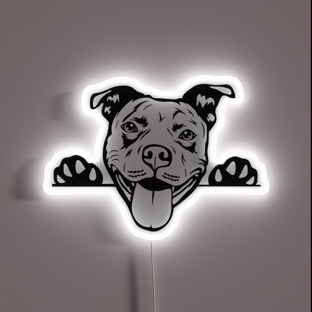Add some humor and personality to your home decor with this hilarious RGB neon sign featuring a lovable pitbull design perfect for dog lovers and fans of this playful breed.