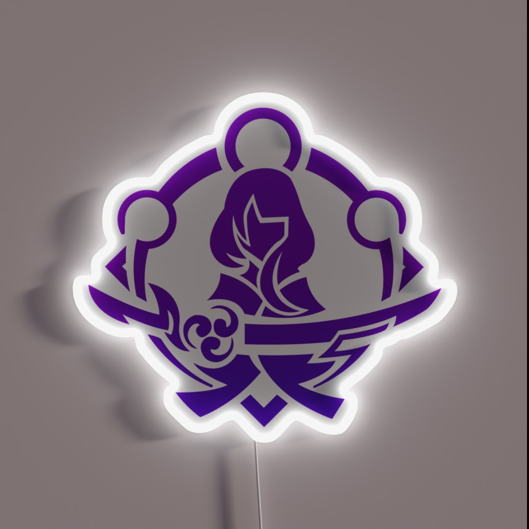 Illuminate your gaming setup with the Raiden Shogun Emblem RGB Neon Sign, a vibrant and eye-catching tribute to the iconic character from Genshin Impact.