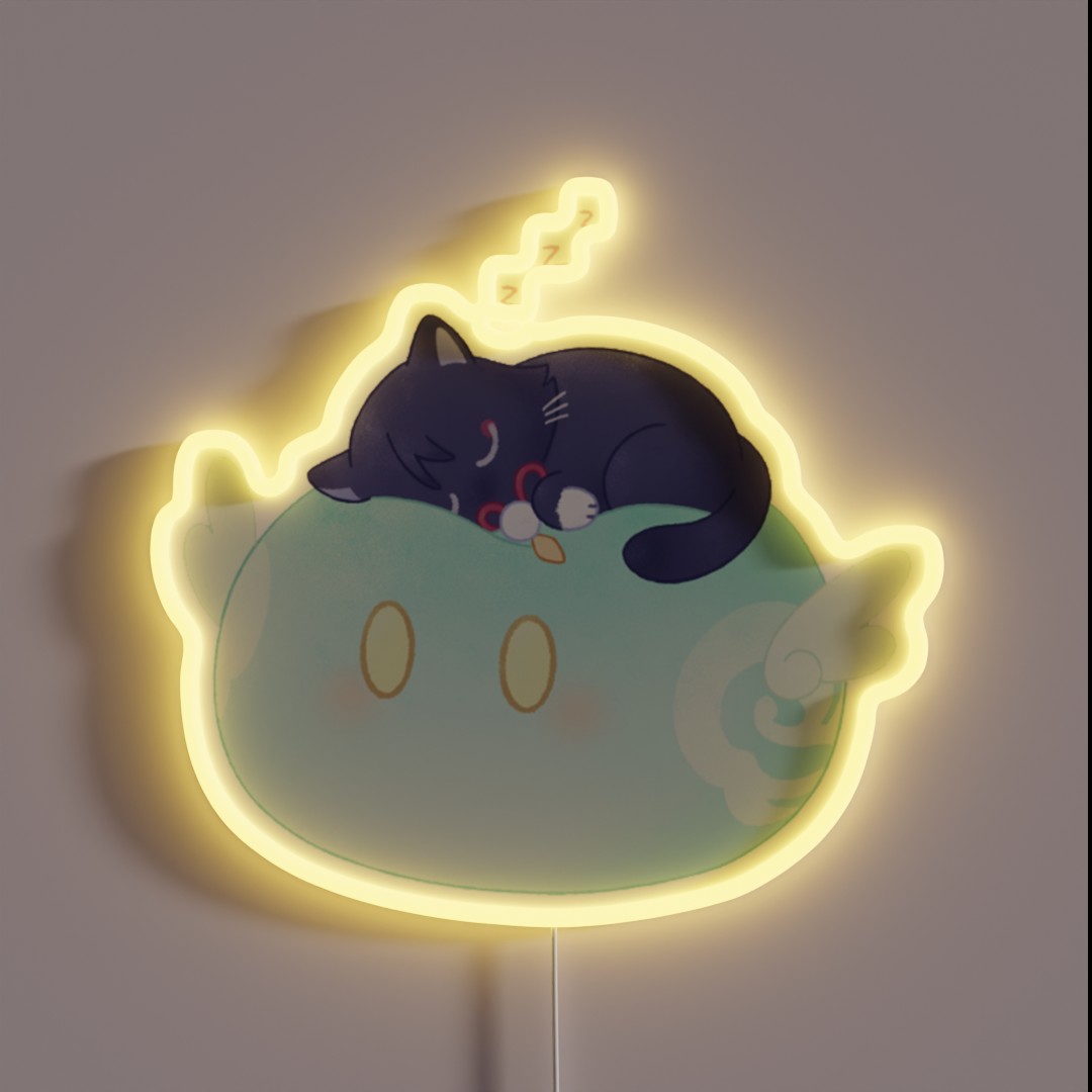 Bring the vibrant world of Teyvat into your home with this enchanting Genshin Impact The Wanderer Scaramouche Cat Slime RGB neon sign. This mesmerizing decoration is inspired by the beloved video game and features a colorful, eye-catching design that’s sure to captivate fans.