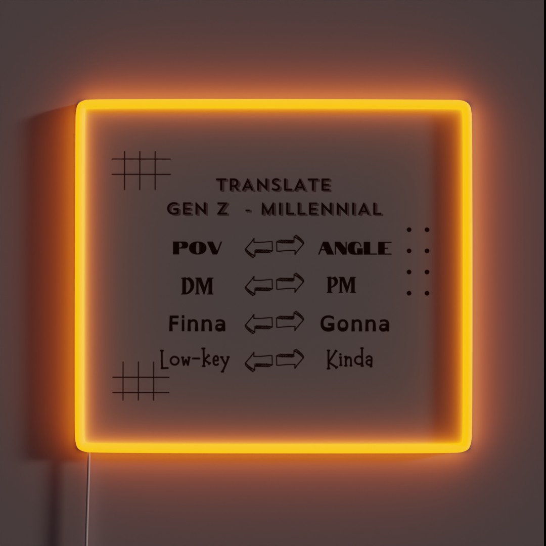 Decode cultural cues with our GenZ Millennial Translation Guide V4 RGB neon sign, illuminating the language of modern youth in vibrant, eye-catching style.