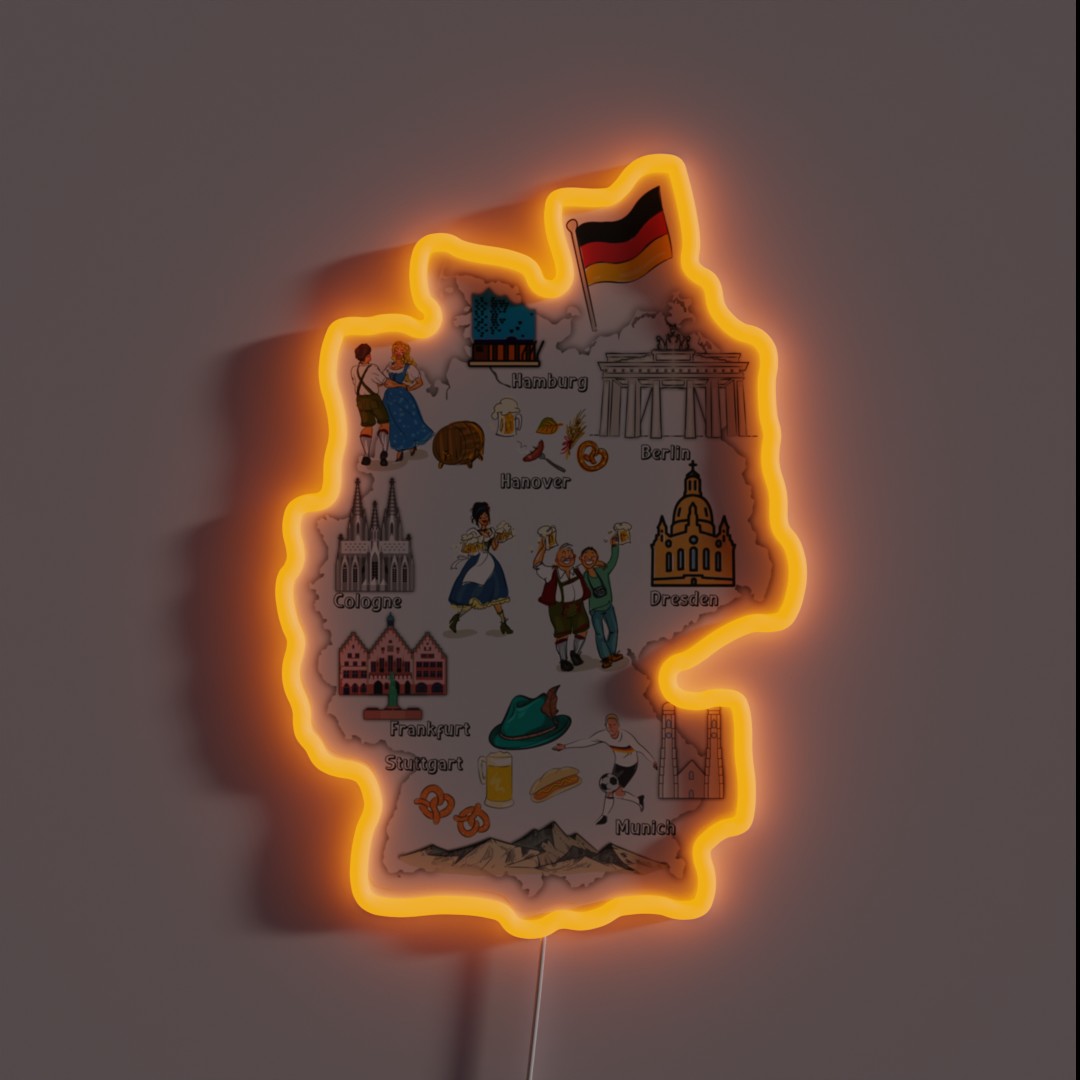 Germany Map GERMANY Landmarks Map Major RGB Neon Sign
