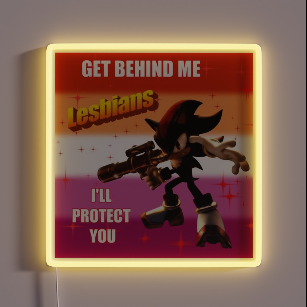 Whether you’re a nostalgic fan or simply love memes, this Get Behind Me Lesbians Shadow the Hedgehog RGB neon sign is sure to bring a smile and some much-needed humor to your space.