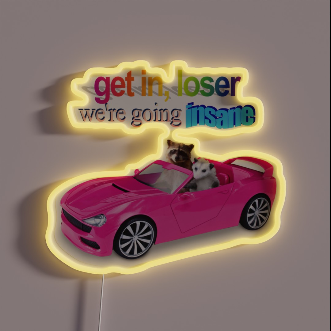Get In Loser We Re Going Insane Raccoon RGB Neon Sign