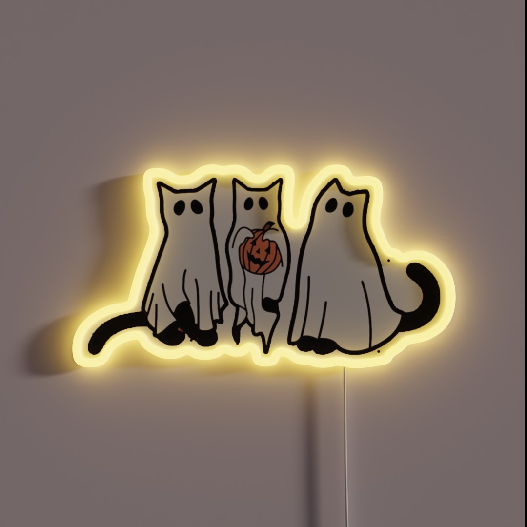 Ethereal neon sign featuring a ghostly cat silhouette in vibrant RGB colors, perfect for adding a spooky touch to any room during Halloween season.