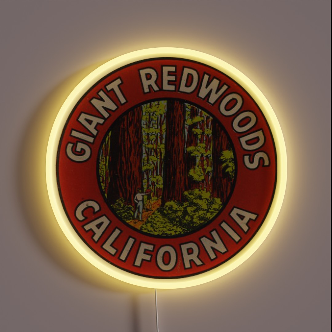 **Illuminate Your Space with the Majestic Giant Redwoods of California Vintage Retro Travel Decal RGB Neon Sign**
