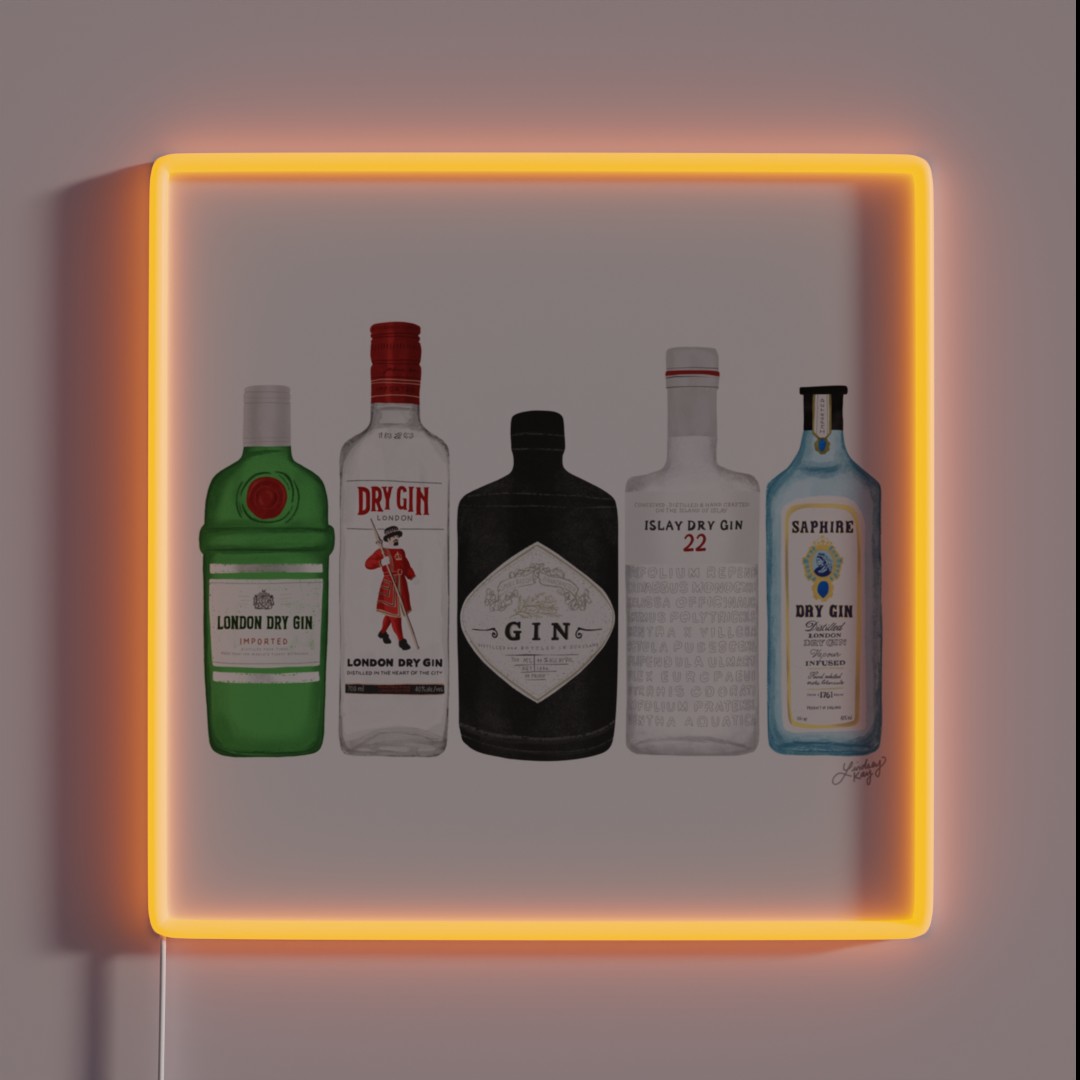 RGB Neon Sign – Vibrant Gin Bottle Illustration Light Box Decoration