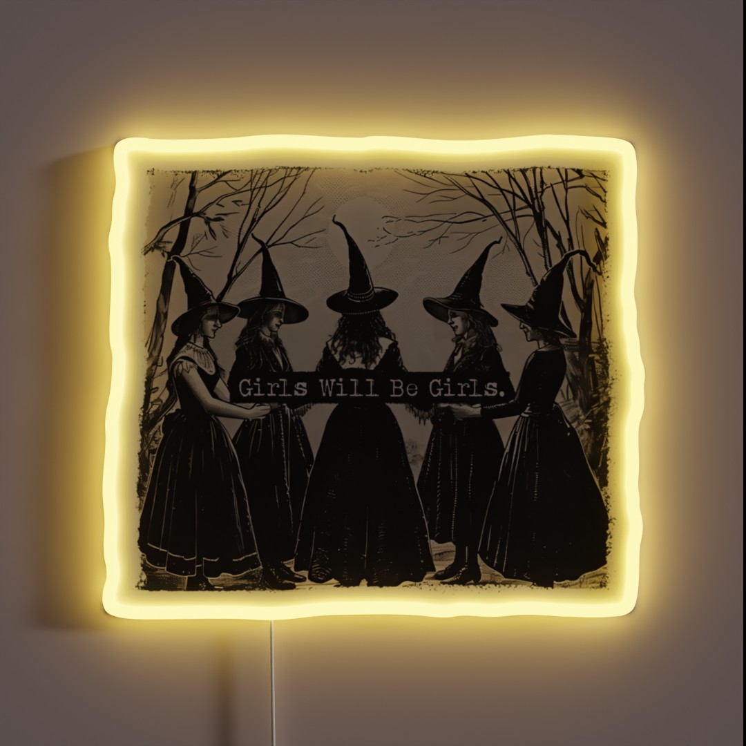 Girls Will Be Girls Witch Coven Vintage Style RGB Neon Sign