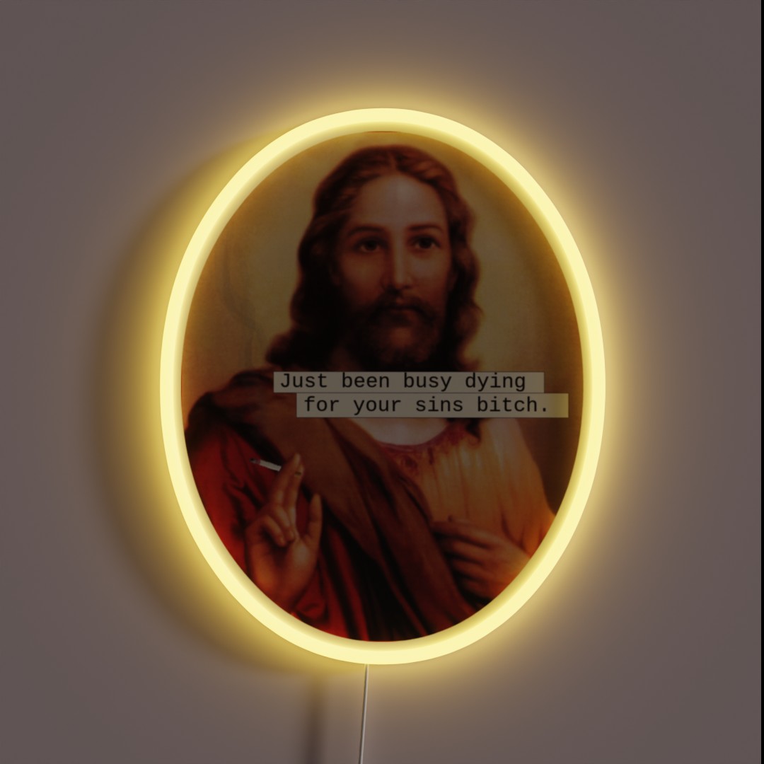Relaxation in full color! This ‘Give Jesus a Break’ RGB neon sign brings humor and faith together, perfect for any laid-back Christian’s home or office.