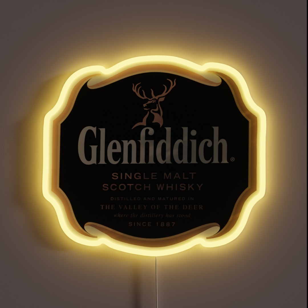 Add a touch of luxury to your space with this vibrant Glenfiddich Distillery RGB neon sign, a unique tribute to Scotland’s finest whisky makers.