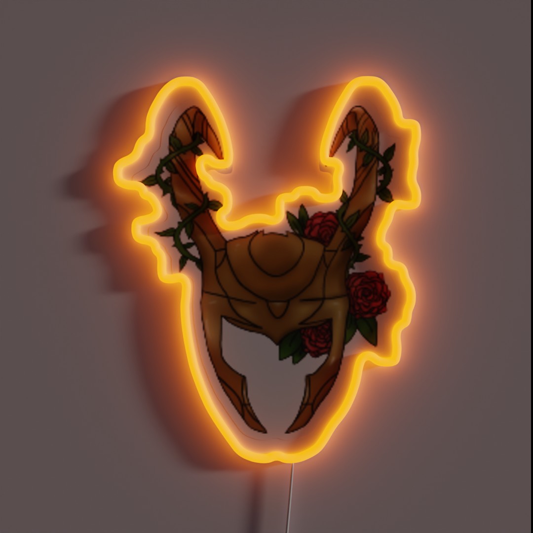 Add a touch of magical mischief to your space with our unique God of Mischief Floral Helmet RGB neon sign, featuring vibrant colors and intricate design inspired by the iconic Marvel character.