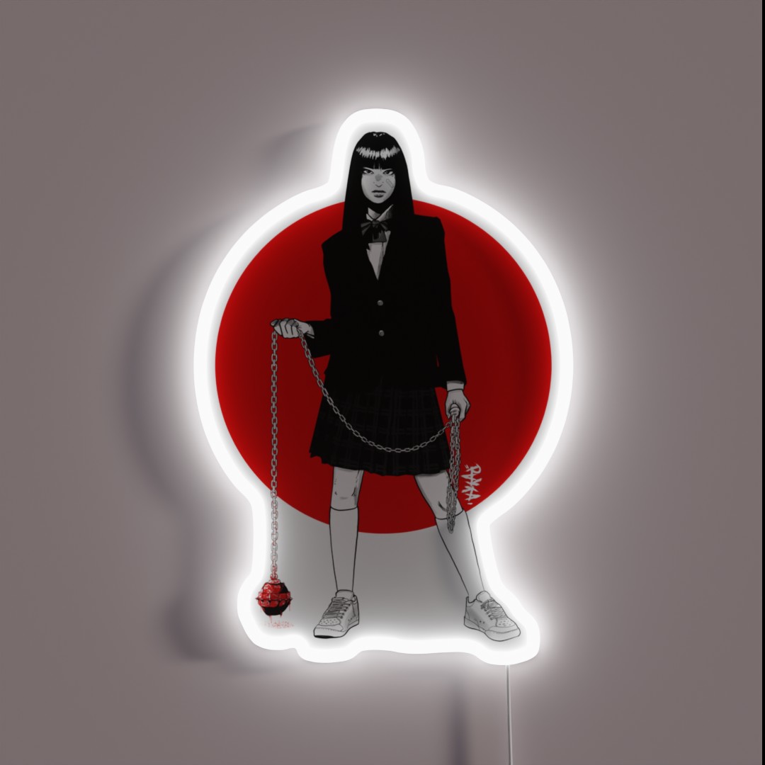 Inspired by the iconic character from the cult classic film “Battle Royale”, this Gogo Yubari RGB Neon Sign is a unique addition to any fan’s room or collection. Standing out with its vibrant and customizable RGB lighting, this sign brings an edgy touch to your space.