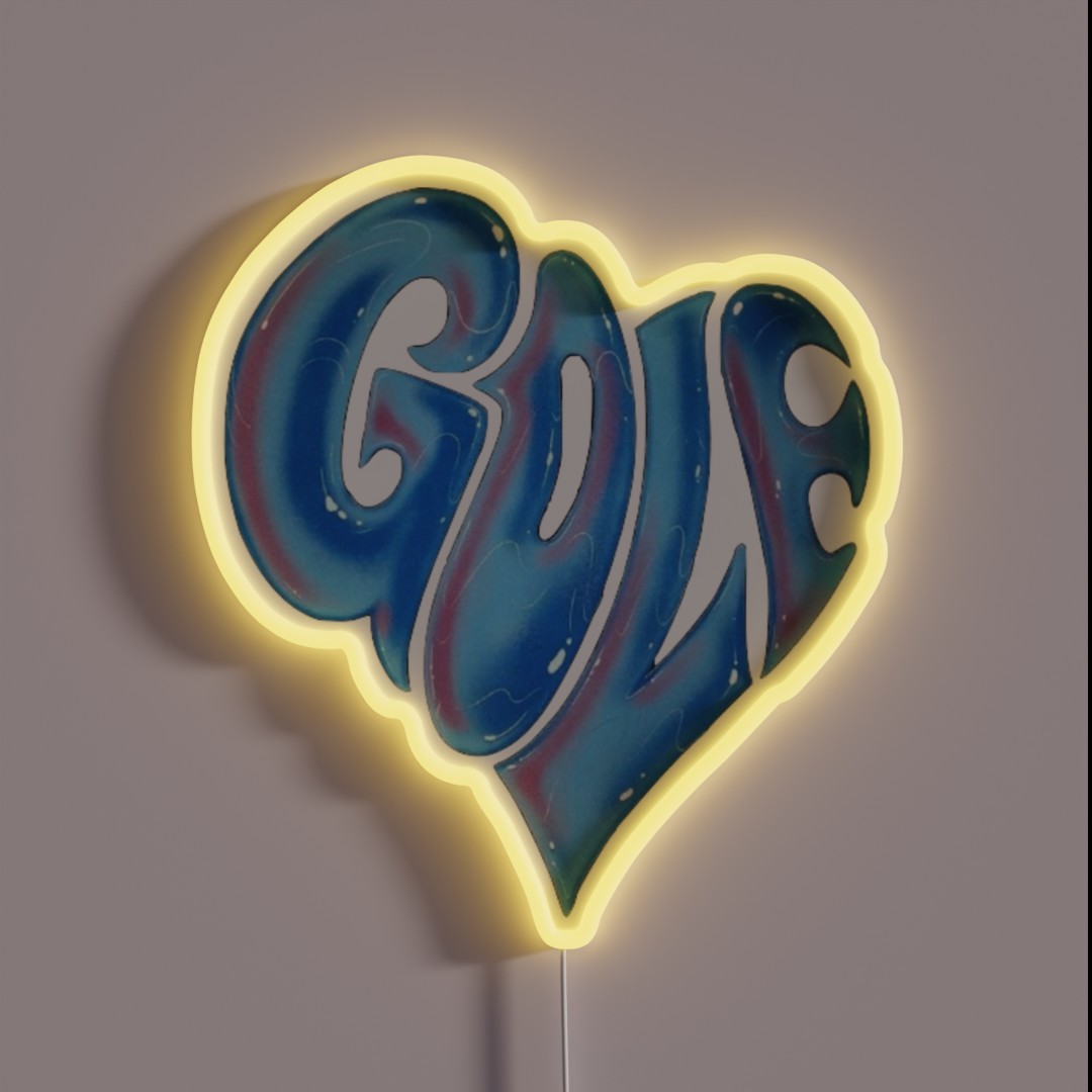 Glowing golf pride on display with this vibrant, customizable RGB neon sign featuring an iconic heart logo design, perfect for any golf enthusiast’s home or office.