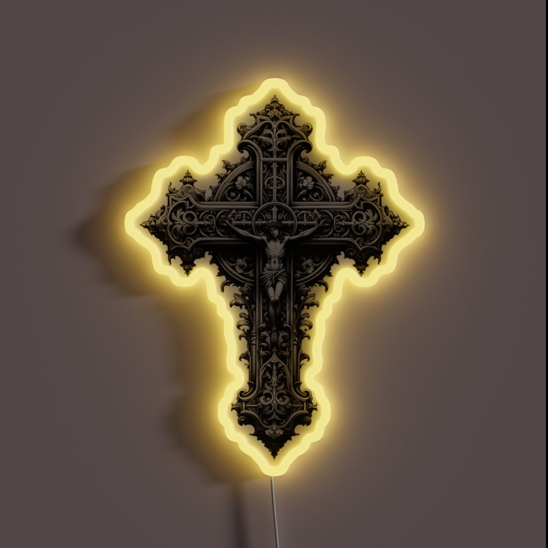 Add an air of mysterious elegance to your space with the Gothic Grace Ornate Cross RGB Neon Sign, featuring intricate details and vibrant color-changing illumination.