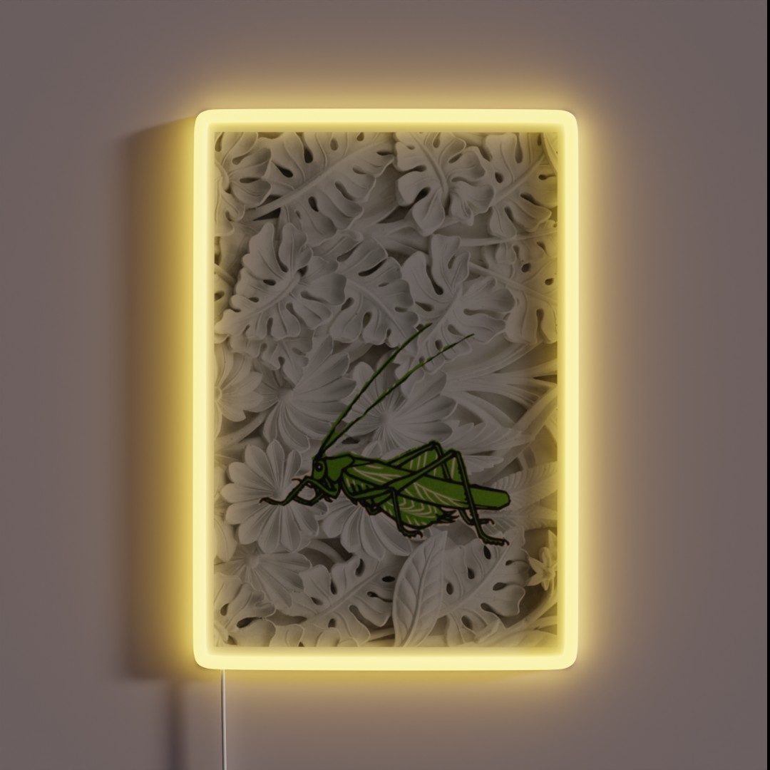 Grasshopper On White Floral RGB Neon Sign