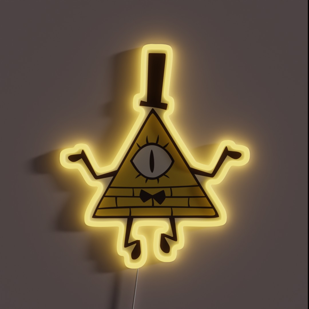 Authentic Gravity Falls Bill Cipher LED Neon Sign featuring a vibrant RGB glow, perfect for fans of the mysterious and sinister villain from the hit Disney XD series.