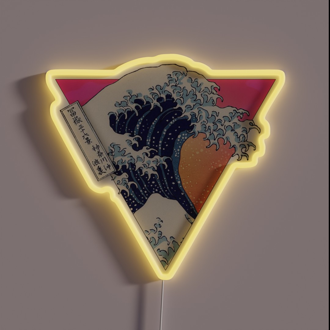 Elevate your space with the mesmerizing Great Wave Aesthetic Vaporwave Sunset Retro RGB neon sign, blending vintage vibes with modern technology to create a one-of-a-kind visual statement.
