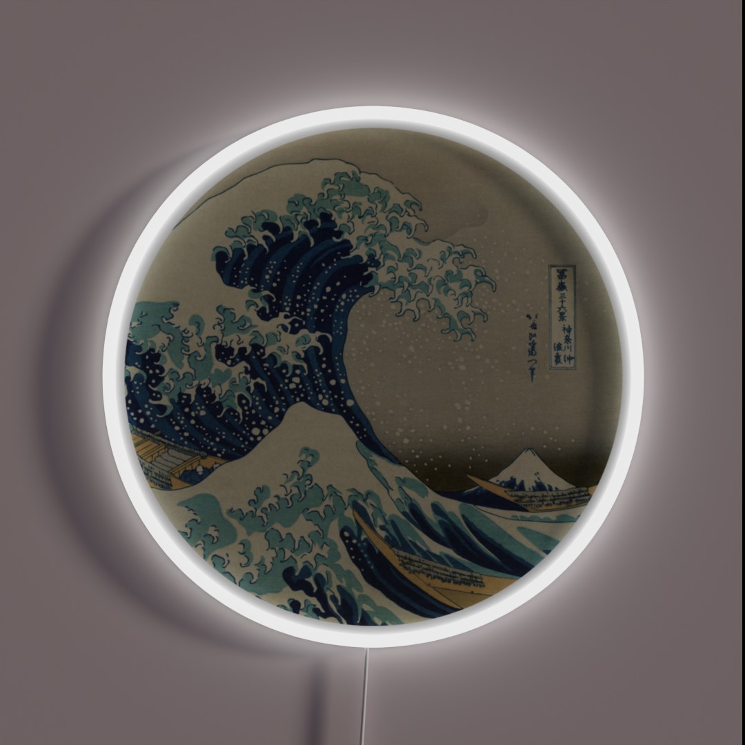 Elevate your home or office decor with a stunning representation of Japanese art history. The Great Wave off Kanagawa circle RGB neon sign is an eye-catching masterpiece that brings the classic woodblock print to life in a dynamic and modern way.