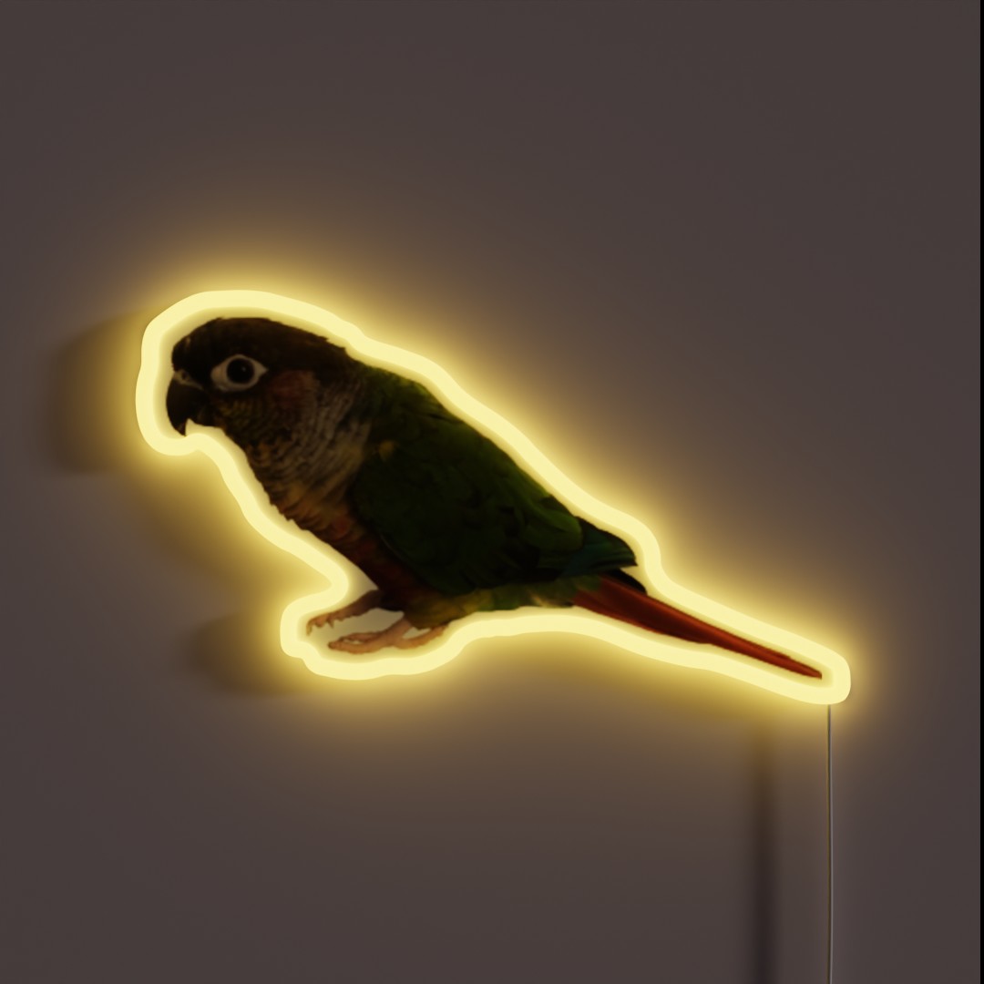 Bring vibrant personality to your space with this radiant Green Cheek Conure-inspired RGB neon sign, perfect for parrot enthusiasts and small parrot owners.