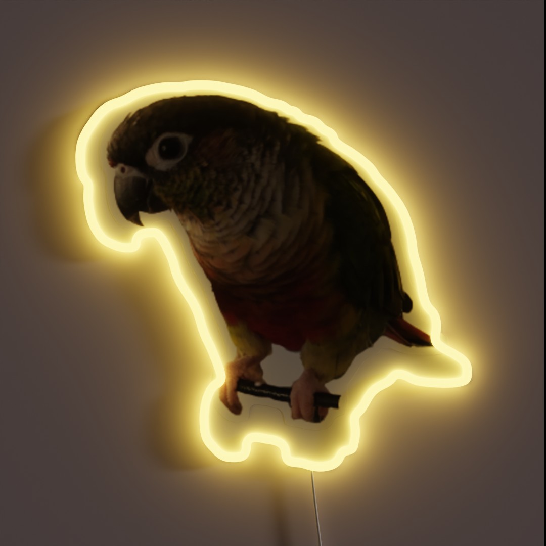 Add vibrant color and personality to your space with this unique Green Cheek Conure design RGB neon sign, perfect for parrot lovers and small parrot enthusiasts.