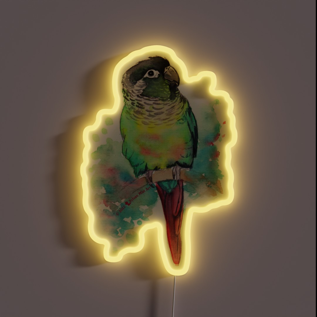 Green Cheek Conure In Watercolor RGB Neon Sign