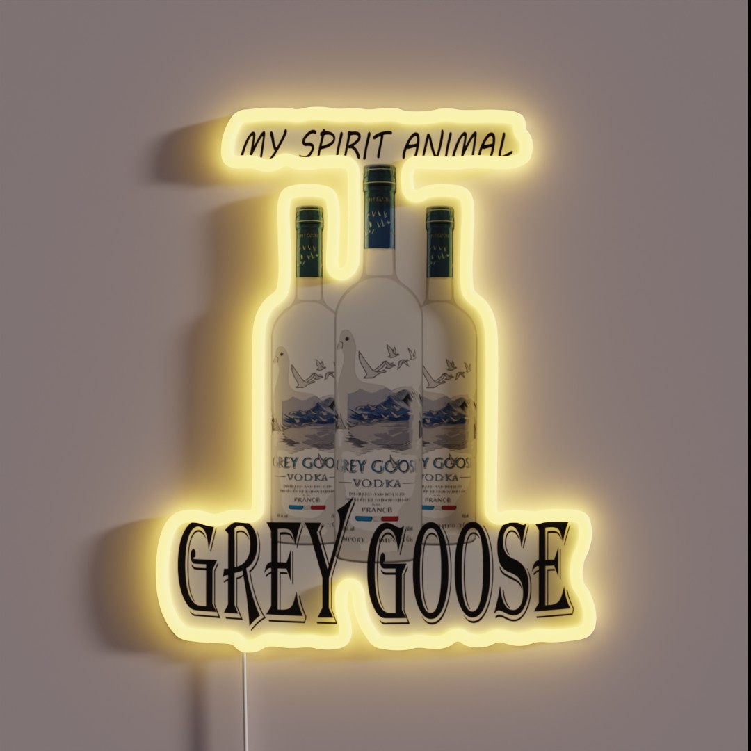 Add a dash of whimsy to your bar with this unique Grey Goose My Spirit Animal vodka funny RGB neon sign, perfect for spirits enthusiasts and party hosts.