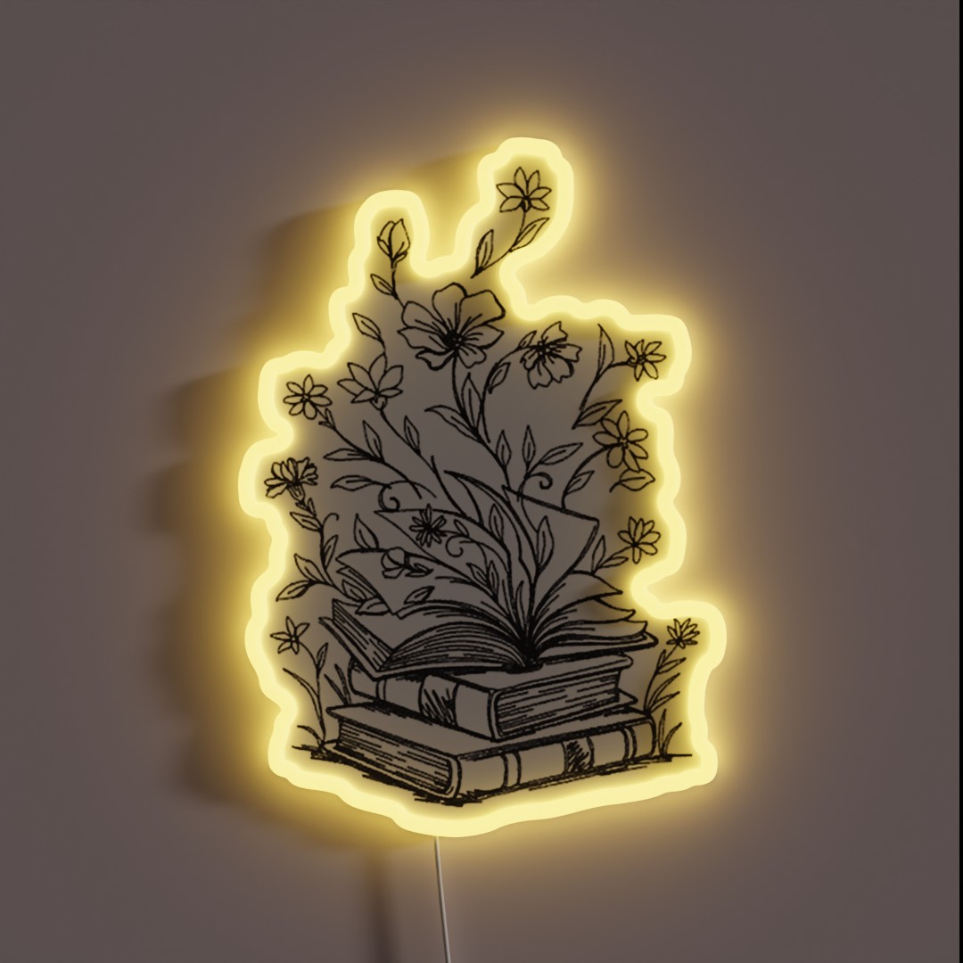 Growing From A Book Open Book With Flying RGB Neon Sign