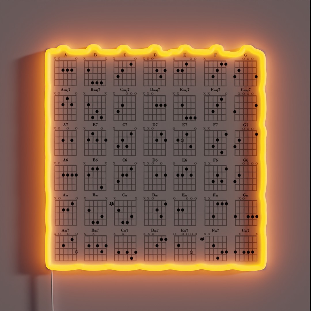 Add a touch of music to your walls with this unique Guitar Chords RGB Neon Sign, featuring colorful, programmable lighting that displays popular guitar chords in a modern and eye-catching design.