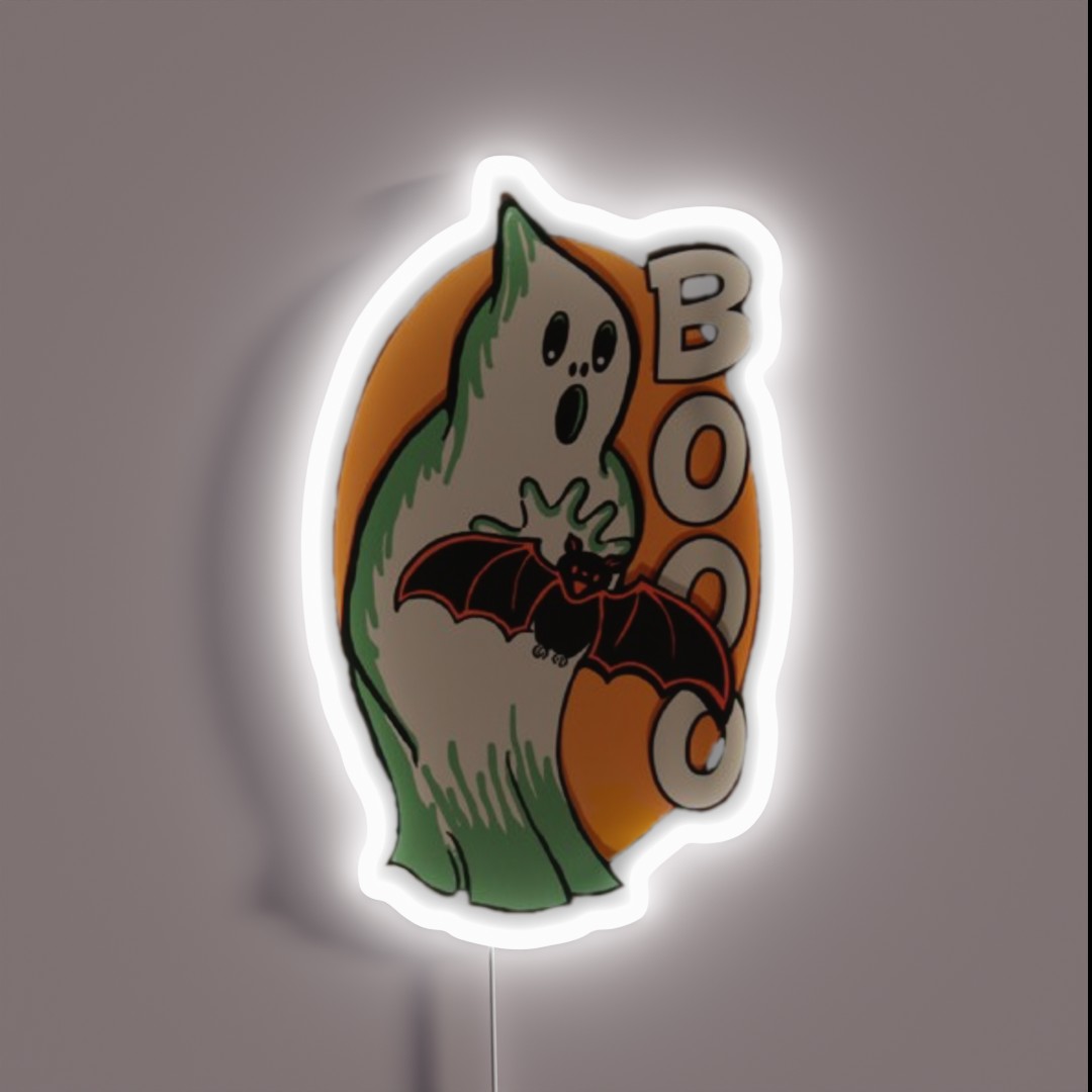 Halloween Ghost Scares Bat With Boo RGB Neon Sign