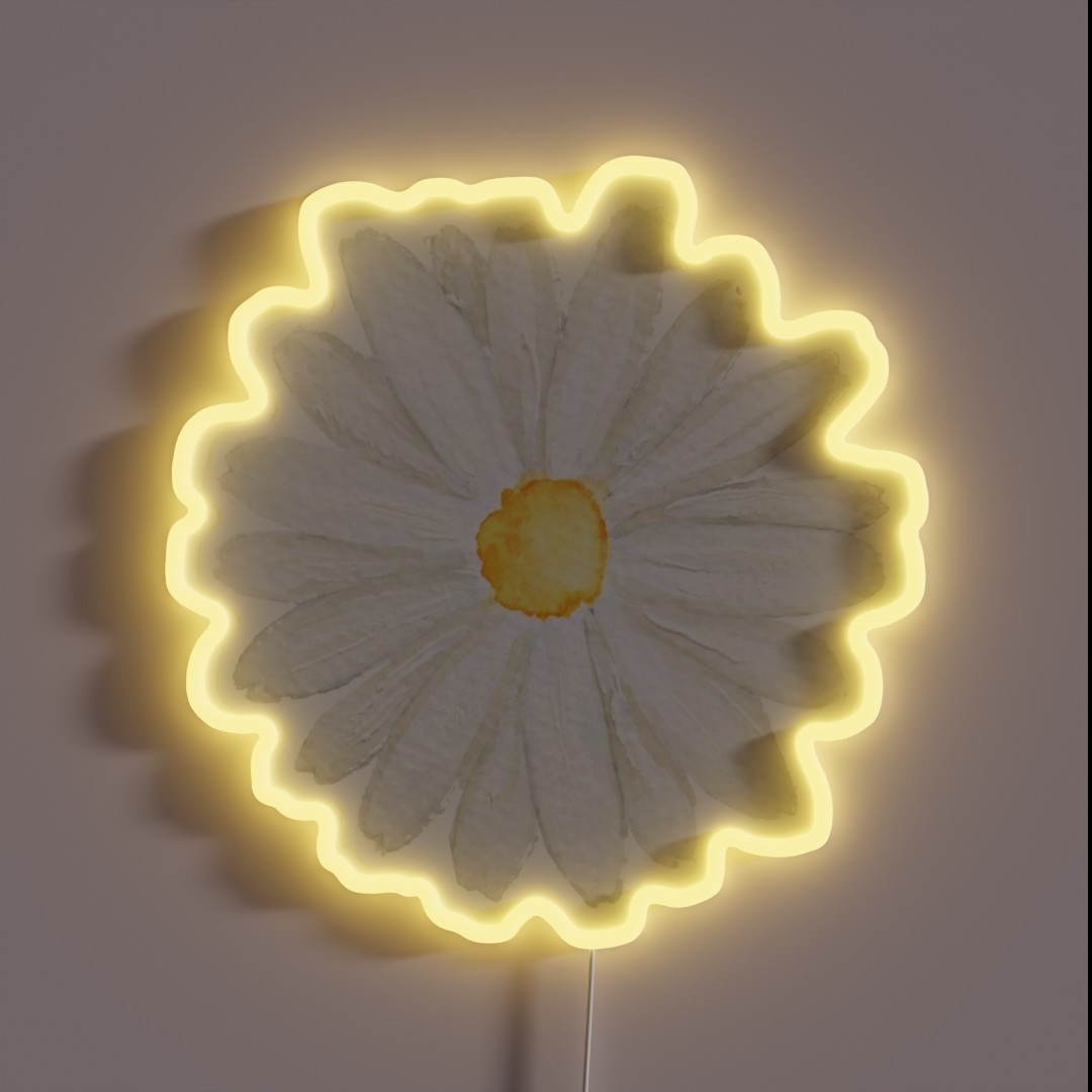 **Add a Pop of Whimsy with this Hand Painted One Little White Daisy Watercolor RGB Neon Sign**