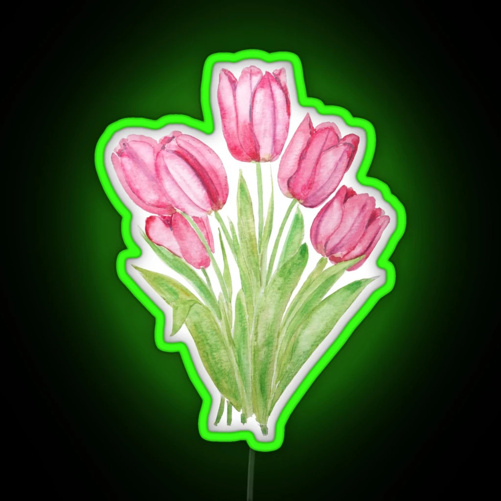 Introducing the Hand Painted Pink Tulips Flowers Watercolor Painting RGB Neon Sign, a vibrant and eye-catching addition to any room. This stunning sign features hand-painted pink tulips in a beautiful watercolor style, brought to life with RGB neon lights.