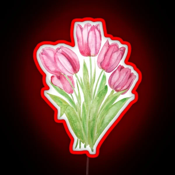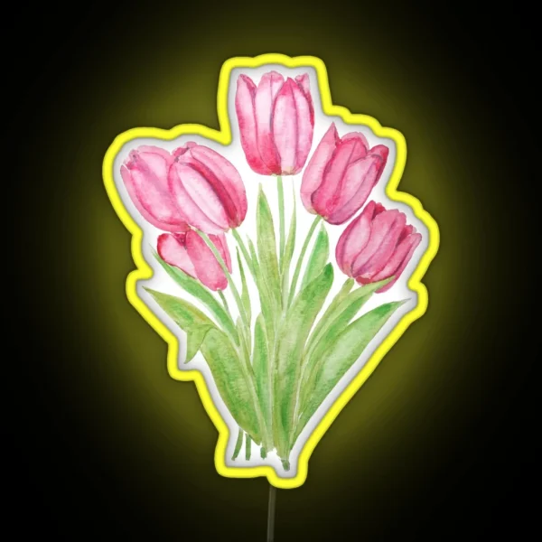 Hand Painted Pink Tulips Flowers Watercolor RGB Neon Sign