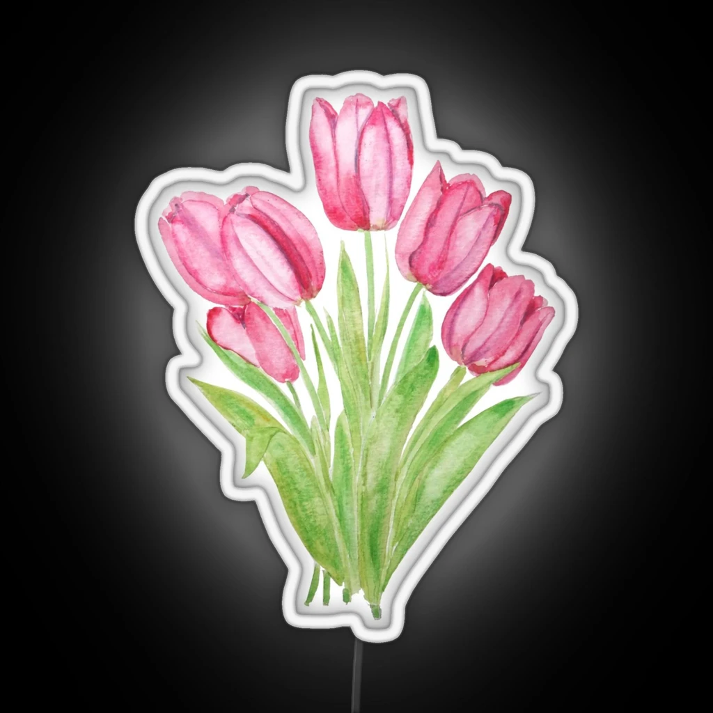 Add a pop of color and vibrancy to any space with this unique hand-painted pink tulip flowers watercolor painting LED sign featuring vibrant RGB neon lighting.