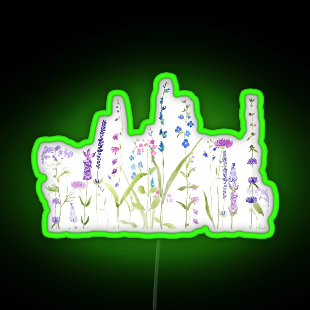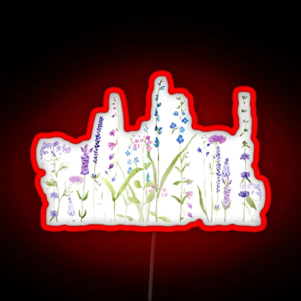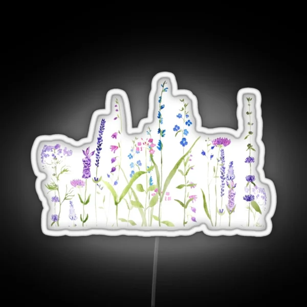 **Hand Painted Purple Blue Wild Flowers Watercolor Painting RGB Neon Sign**