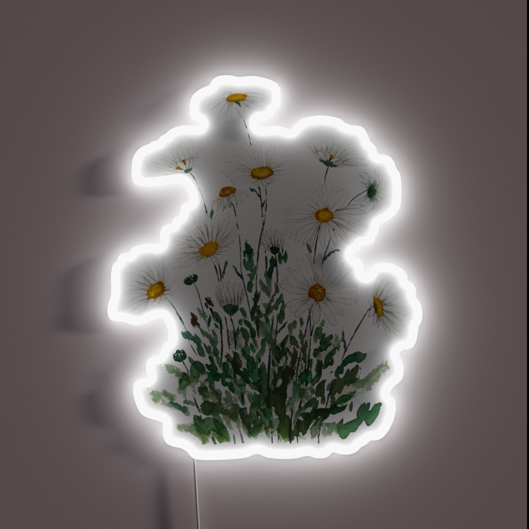 Hand Painted White Margaret Daisy Watercolor RGB Neon Sign