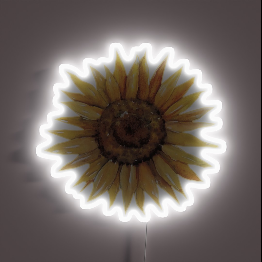 Brighten up any space with our unique, hand-painted sunflower RGB neon sign that brings vibrant color and energy to your walls.