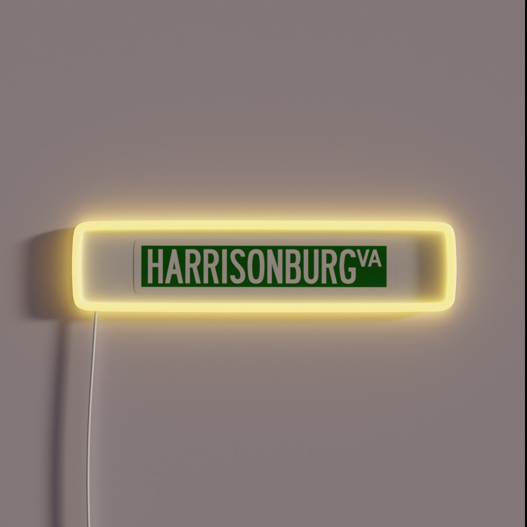 Harrisonburg pride in a radiant glow – Customizable, full-color Harrisonburg RGB neon sign for your home or office, perfect for Virginia Cavaliers fans and local enthusiasts.