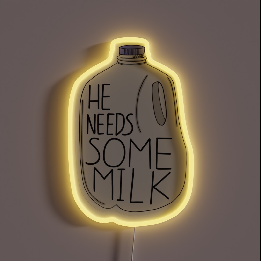 Whether you’re a fan of quirky humor, love RGB lighting, or just want to add some whimsy to your space, our “He Needs Some Milk” neon sign has got you covered. Order now and get ready to illuminate your world with style!