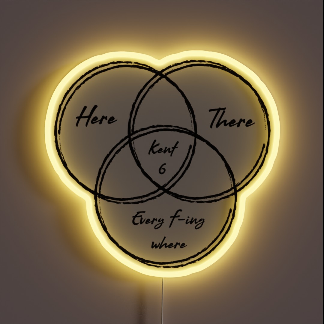 Make a statement with this eye-catching, touchable, and safe RGB neon sign that will be the envy of all who lay eyes on it. The He’s Here There and Every F-ing Where sign is designed to stand out in any room, adding a pop of color and personality to your space.