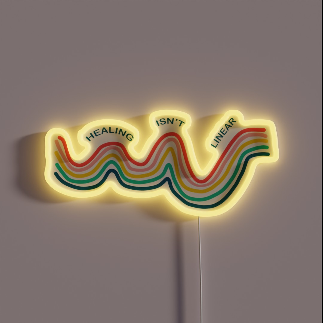 Add a vibrant touch to your space with our Healing Isn’t Linear RGB Neon Sign, a motivational reminder that growth and progress aren’t always straightforward.