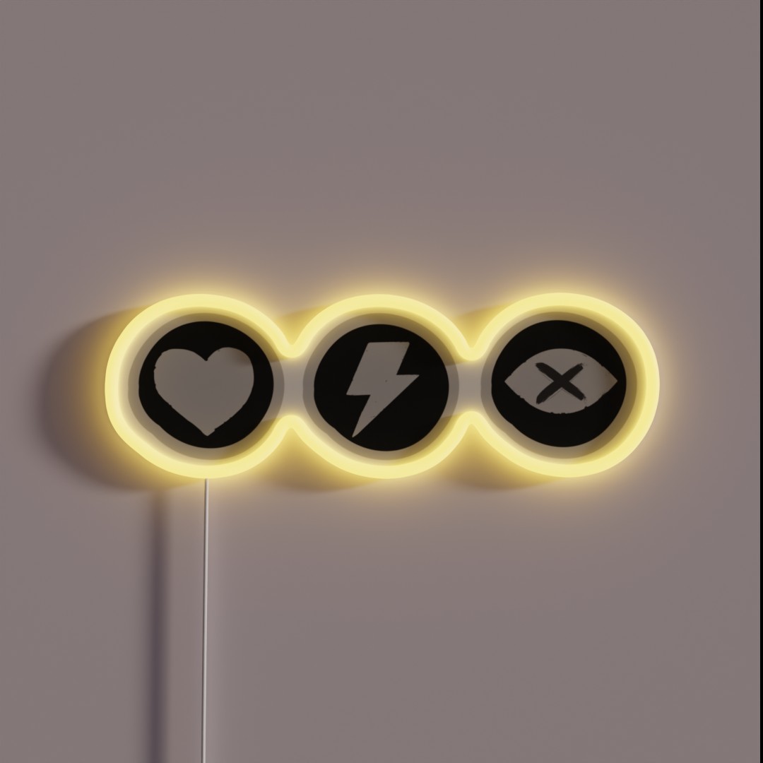 Illuminate your gaming space with this Red Dead Redemption 2 themed RGB neon sign, featuring the Health, Stamina, and Dead Eye core symbols in vibrant color, perfect for fans of the game.