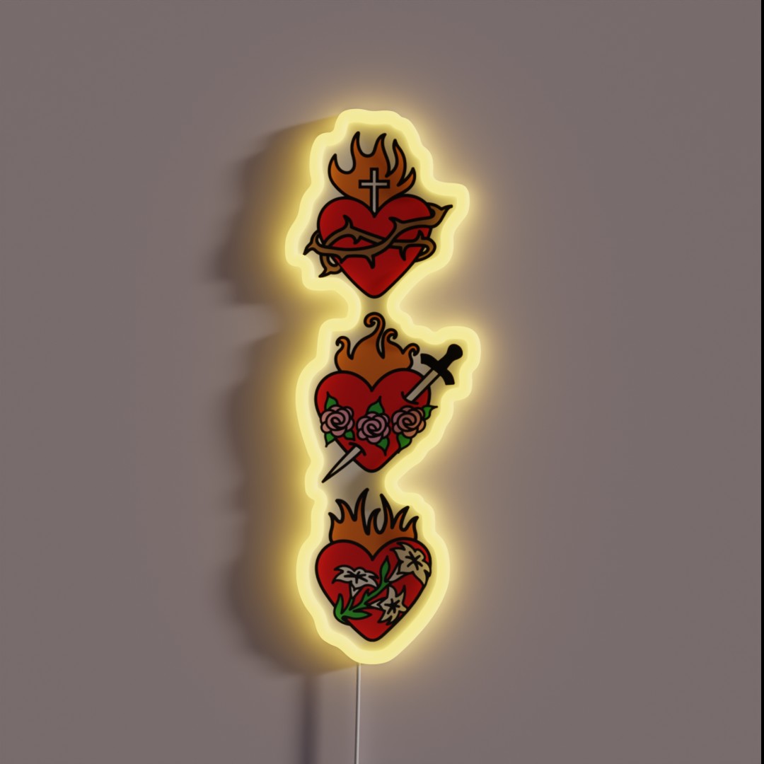 Add a touch of divine charm to your space with our Hearts of the Holy Family RGB neon sign, a beautiful and radiant tribute to faith and love.