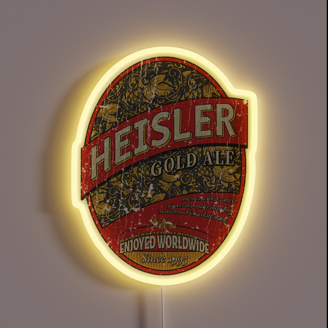 A nostalgic tribute to the classic Heisler Gold Ale beer brand from 1995, now available as a vibrant and touchable RGB neon sign. This unique decorative piece combines retro flair with modern technology, making it an ideal addition to any home bar, brewery, or beer enthusiast’s collection.