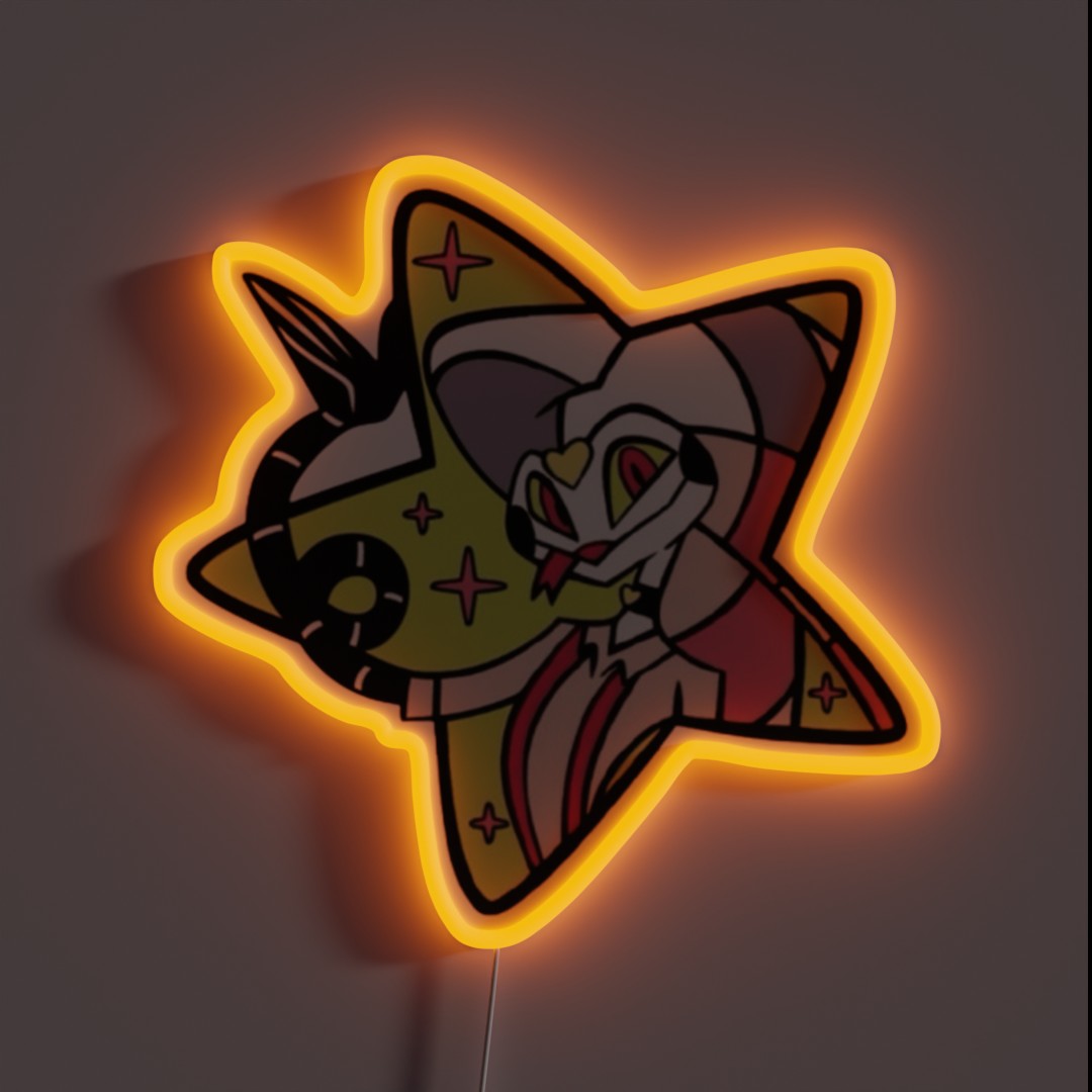 Add a touch of eccentricity to your space with the Helluva Boss Fizzarolli Star Pattern Print RGB Neon Sign, a vibrant and eye-catching decoration that brings the show’s quirky charm to life.