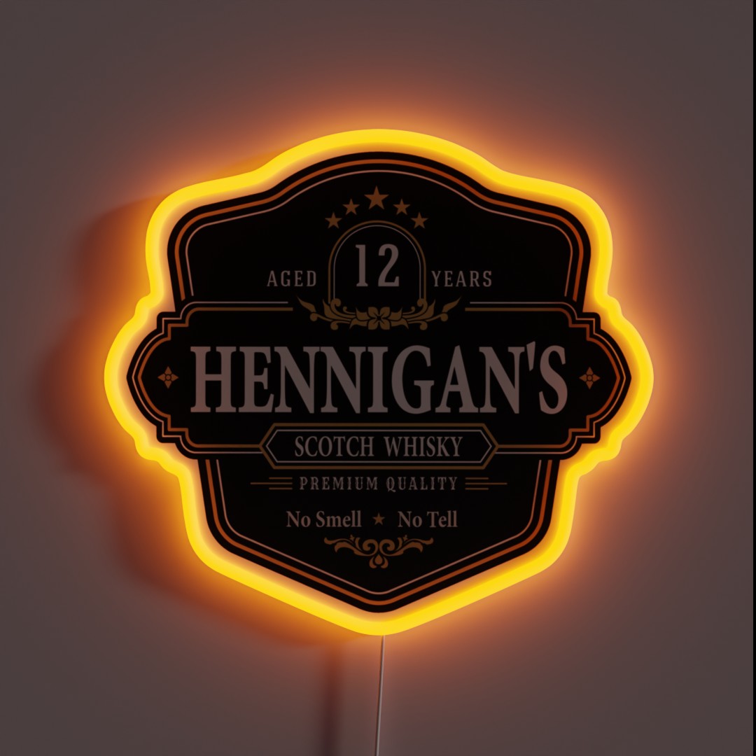 Perfect for whiskey enthusiasts, collectors, or anyone looking to add a unique ambiance to their space. Our Hennigans Scotch Whisky RGB neon sign is an eye-catching conversation starter that will elevate any room with its mesmerizing glow.