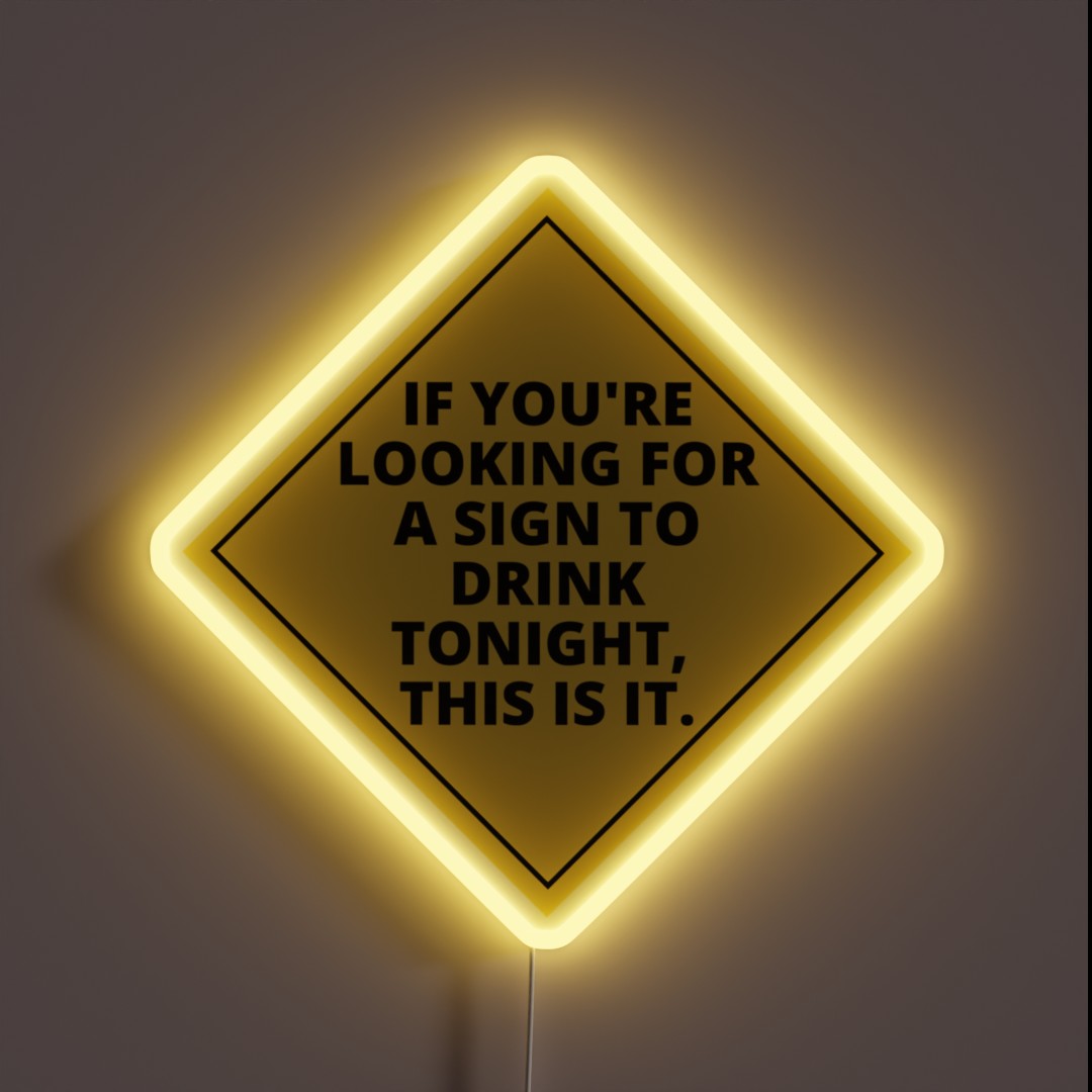 Add a vibrant touch to your gaming setup or home bar with the ‘Here’s a Sign to Drink’ RGB neon sign, featuring colorful, glowing letters that light up the night.