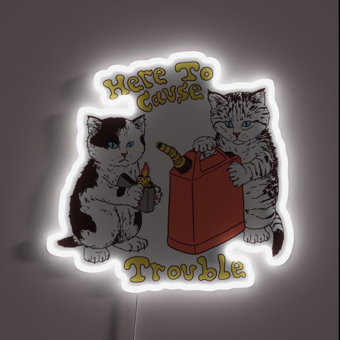 Add some edgy flair to your space with our Here To Cause Trouble RGB neon sign, featuring bold black letters and vibrant color-changing technology that’s sure to spark conversation and make a statement.