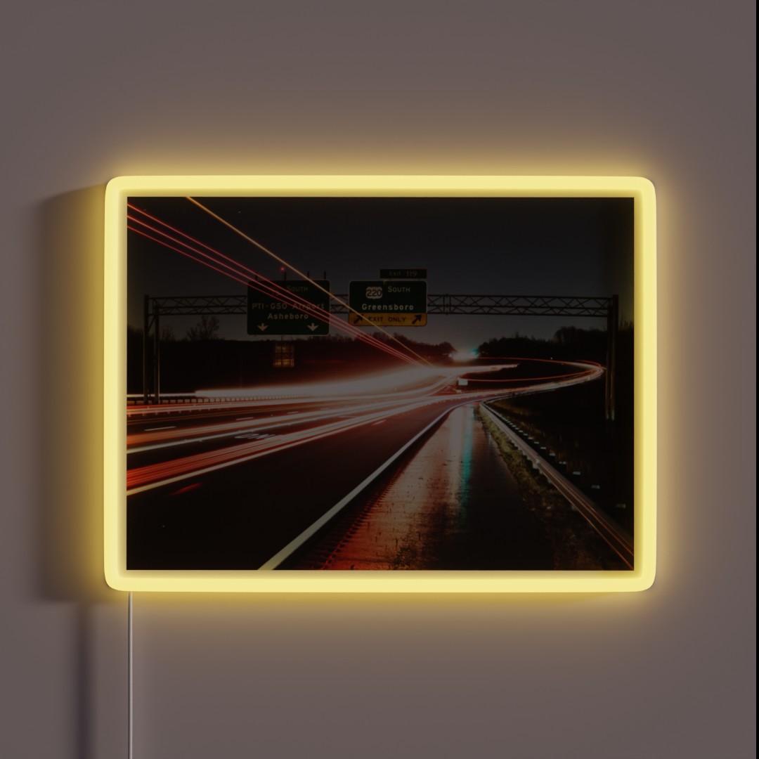 Brighten up any room with our vibrant Highway Light Trails RGB Neon Sign, capturing the mesmerizing glow of traffic lights in a stunning and eye-catching display.