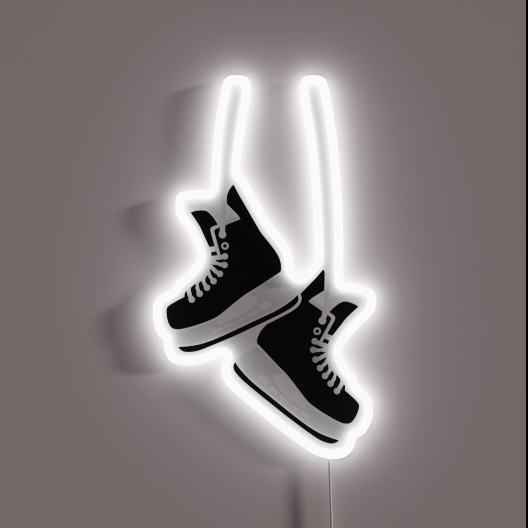 Neon hockey-themed sign with customizable RGB colors that can be programmed to display various lighting effects and skate logos, perfect for hockey players and fans to showcase their passion and personality in home decor.